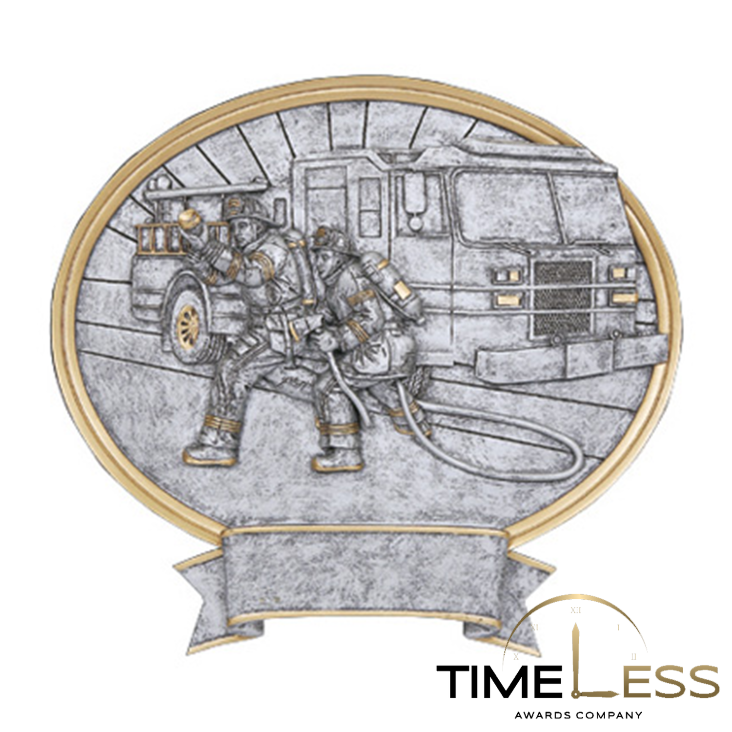 This gold & pewter oval resin plaque recognizes Firefighters and is customizable. A large area at the bottom of the award can accommodate your personalization needs while the gold and pewter finish complement the look of the award. This item can either be hung on a wall or placed on a desk using the included stand. Bulk quantities may be available. Please contact us for more information and prices.