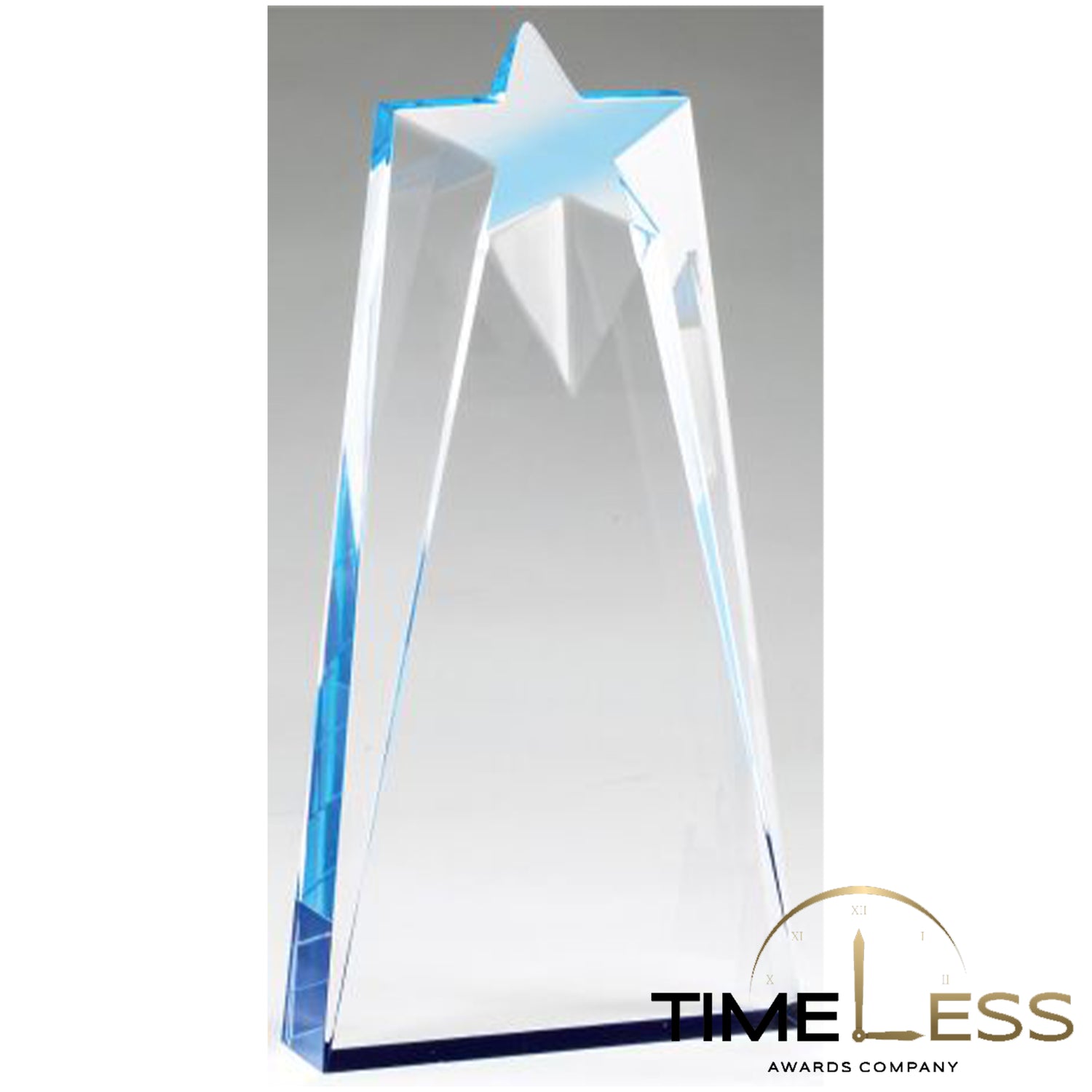 Do you have an employee or volunteer who has shone above all others? Is there someone in your organization who has risen to the top in leadership or service? A star award is the unmistakable mark of superior work and excellence, and this acrylic trophy is the perfect gift for recognizing exceptional performance. A colored mirror base reflects a light throughout the award, creating a truly special effect. This is not your typical trophy! The Star Lucite Acrylic Award comes in three different heights and can be customized with the graphics or wording that you need.